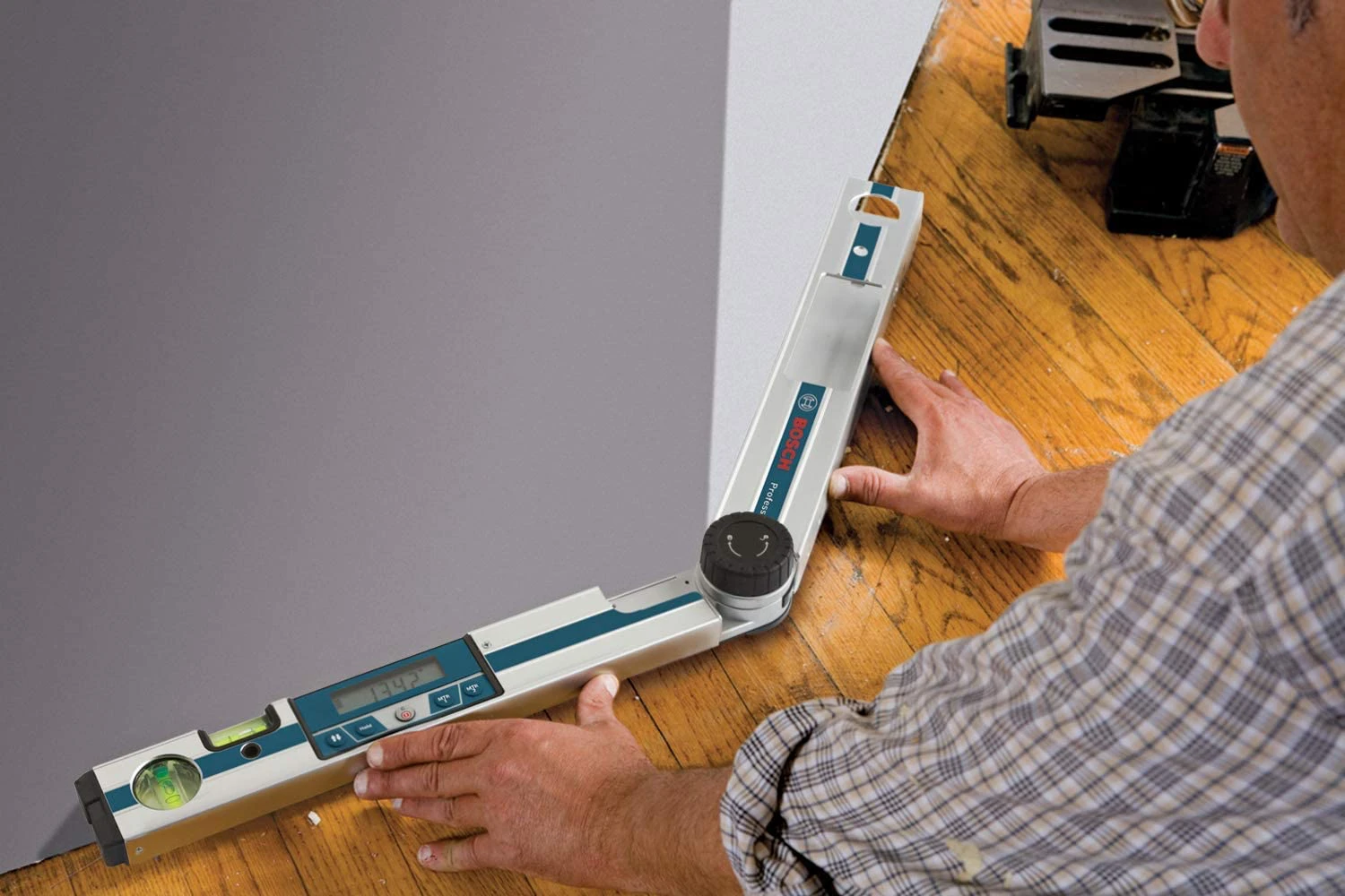 - Four tools in one: angle finder, miter calculator, protractor and level.