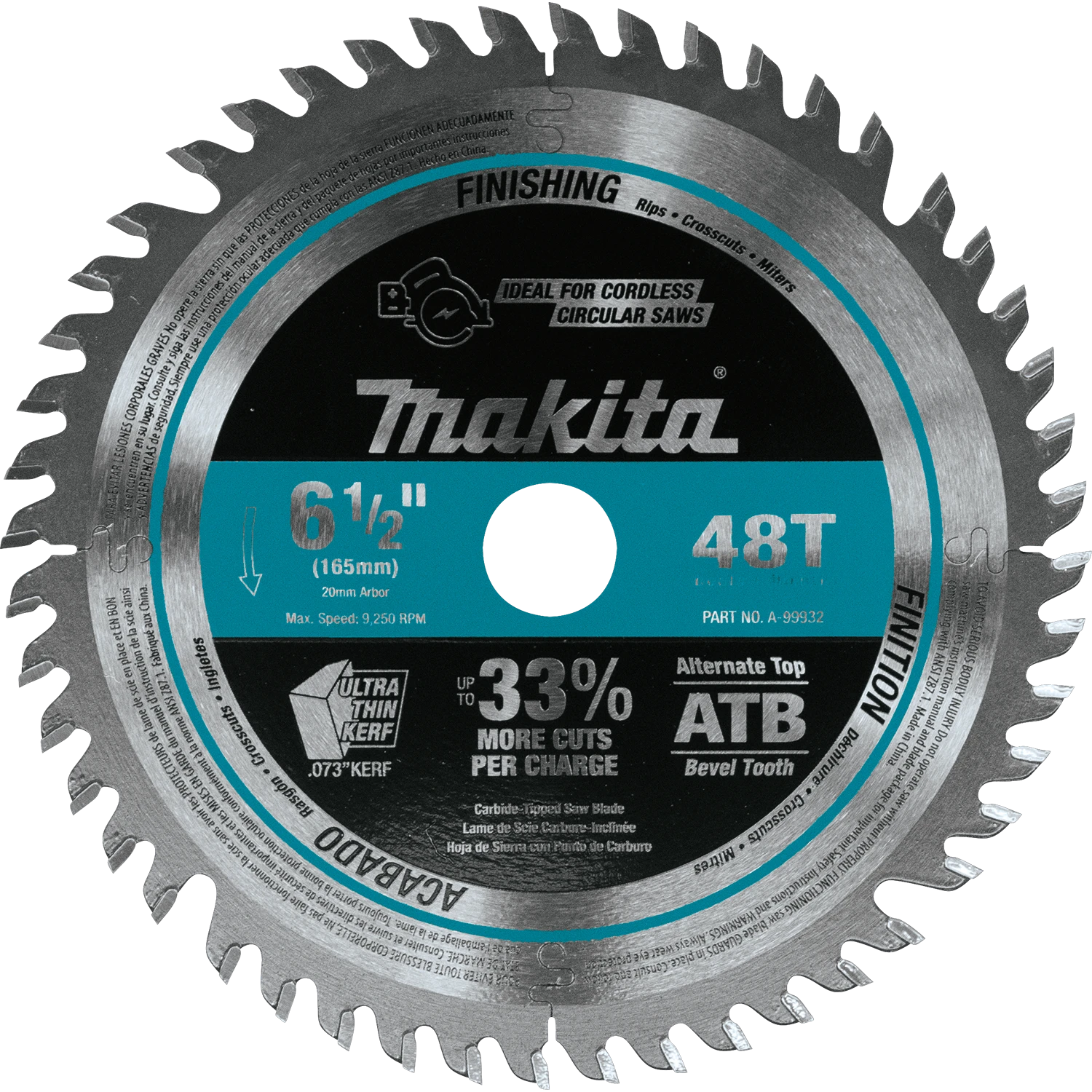 The Makita 48T Carbide-Tipped Saw Blade is the ideal accessory for the Makita 6-1/2″ Plunge Circular Saw (model XPS01, sold separately). With the XPS01, the A-99932 is an ideal blade for a full range of cutting applications including ripping plywood. The Blade features high-grade carbide tips for improved durability, and is engineered for smoother cutting.